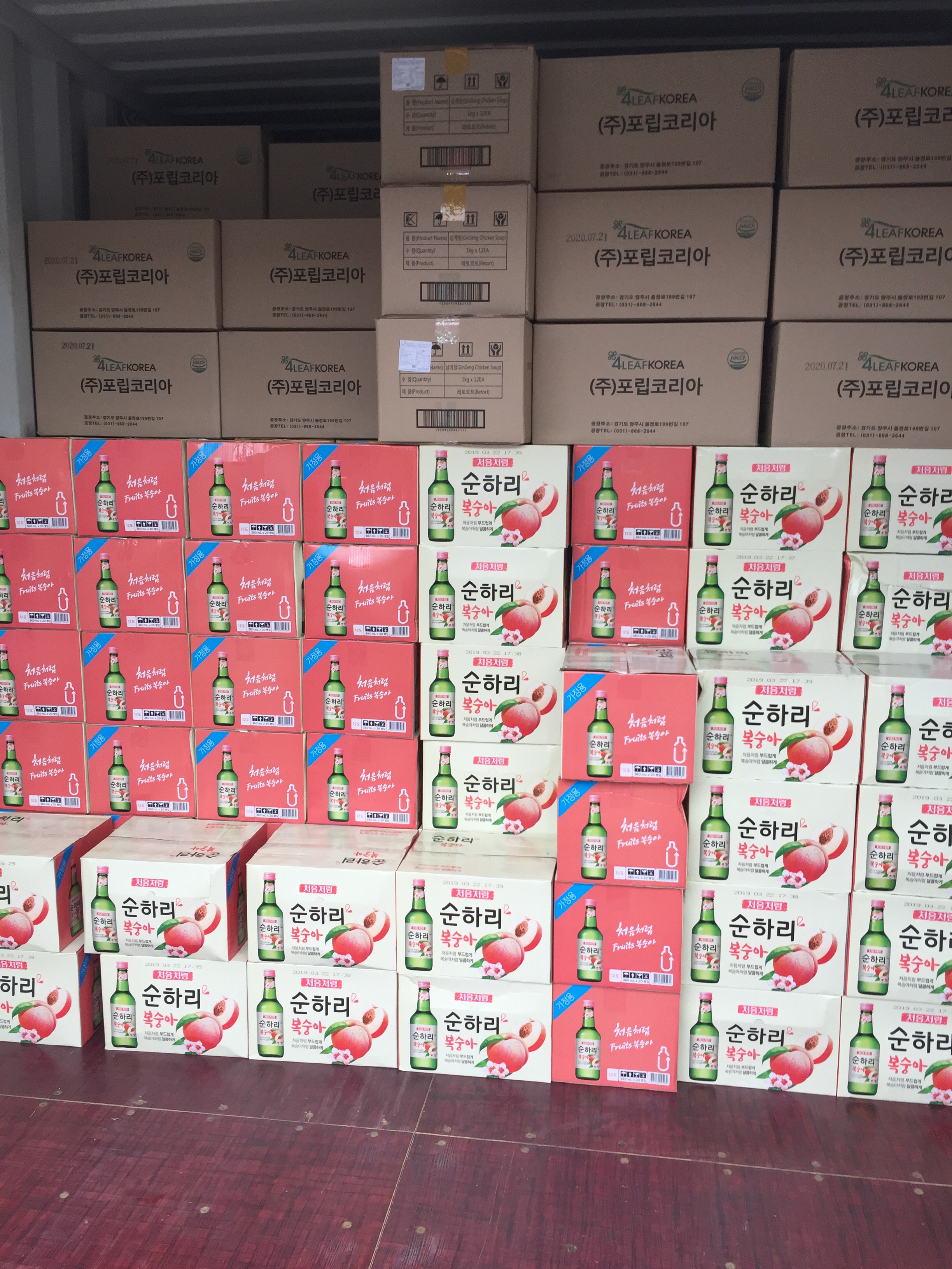 20ft 주류 및 음료, 식자재류 선적완료