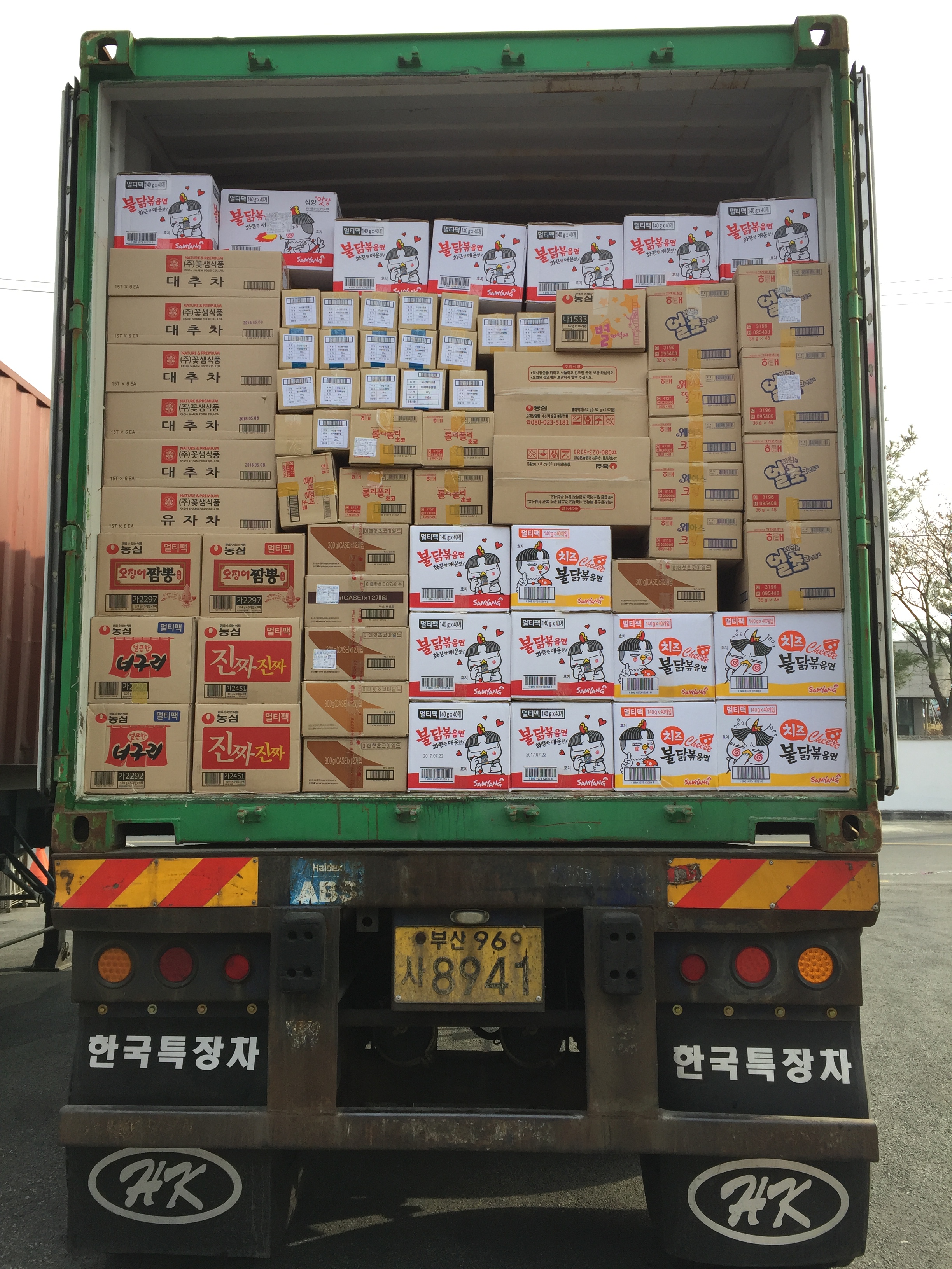 라면, 과자, 차 외 20ft 선적
