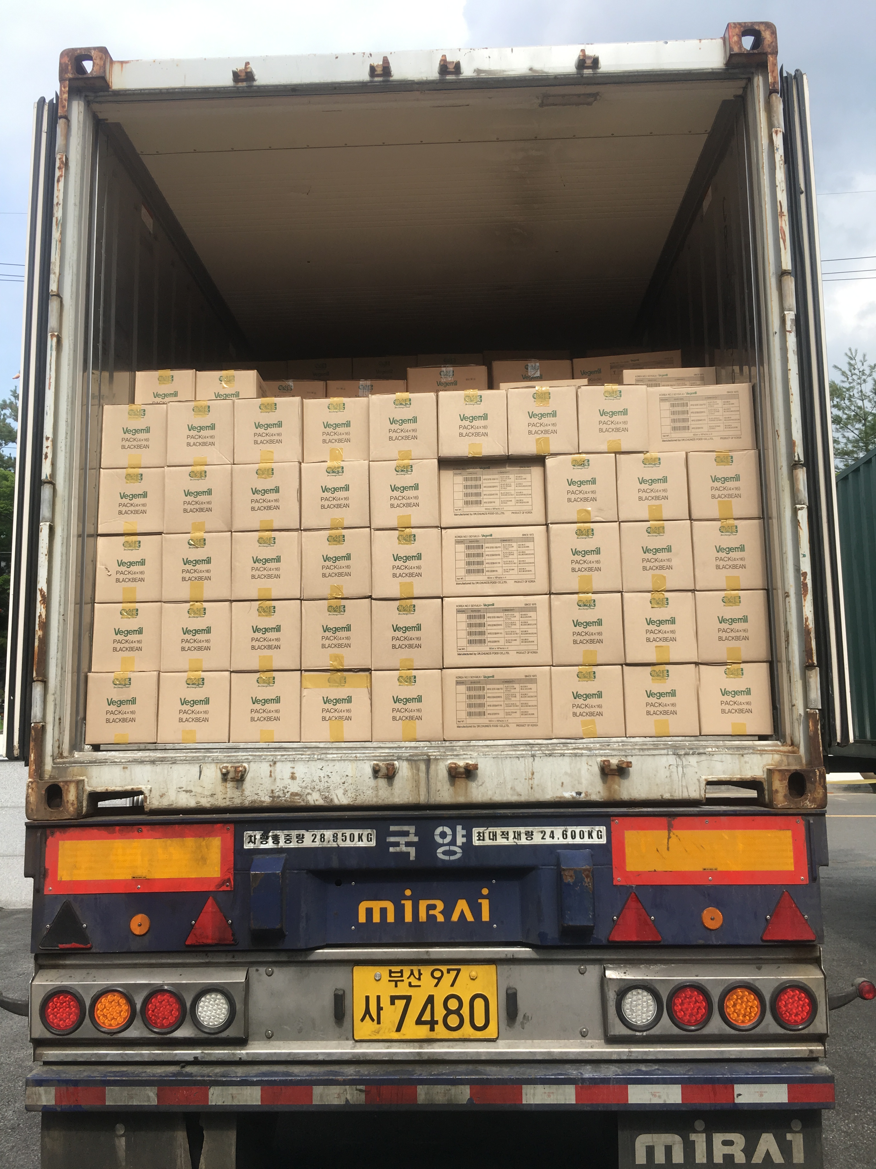 죽, 음료, 커피, 베지밀 외 20피트 홍콩행 선적완료.