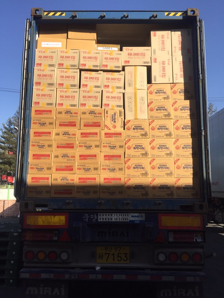 20피트 라면 및 과자류 선적완료