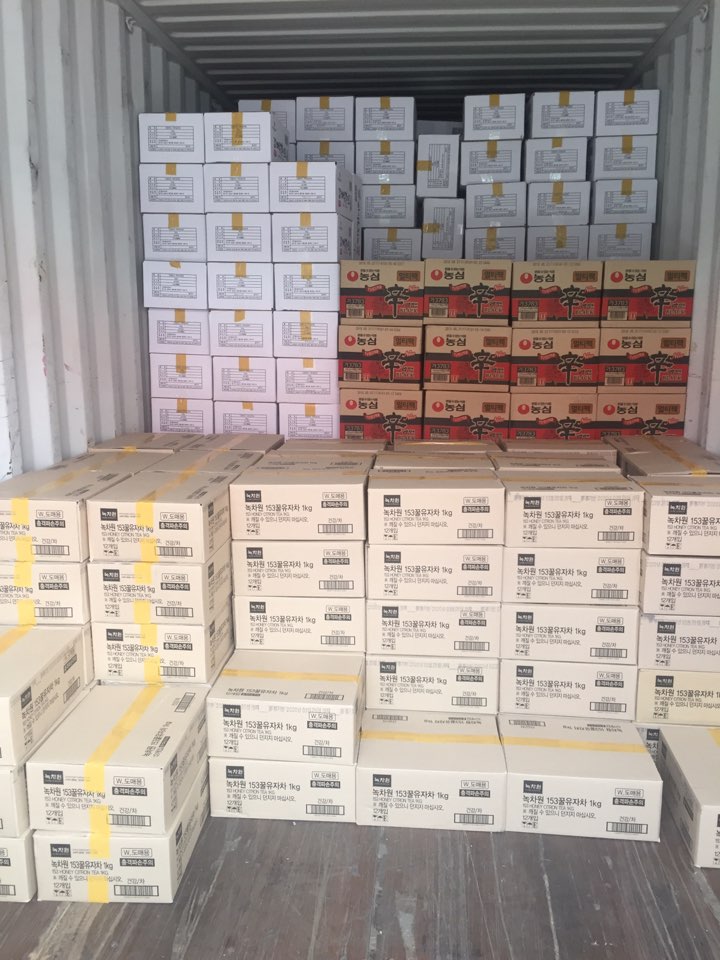 40피트 유자차,샴푸,라면,과자 류 선적완료