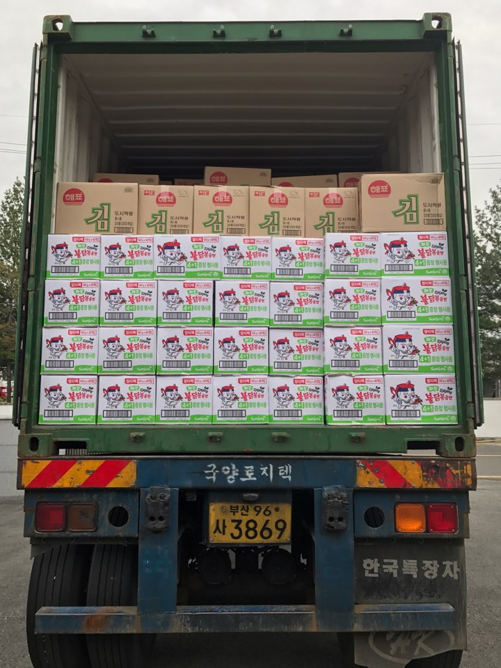 20피트 라면 및 과자류 선적완료
