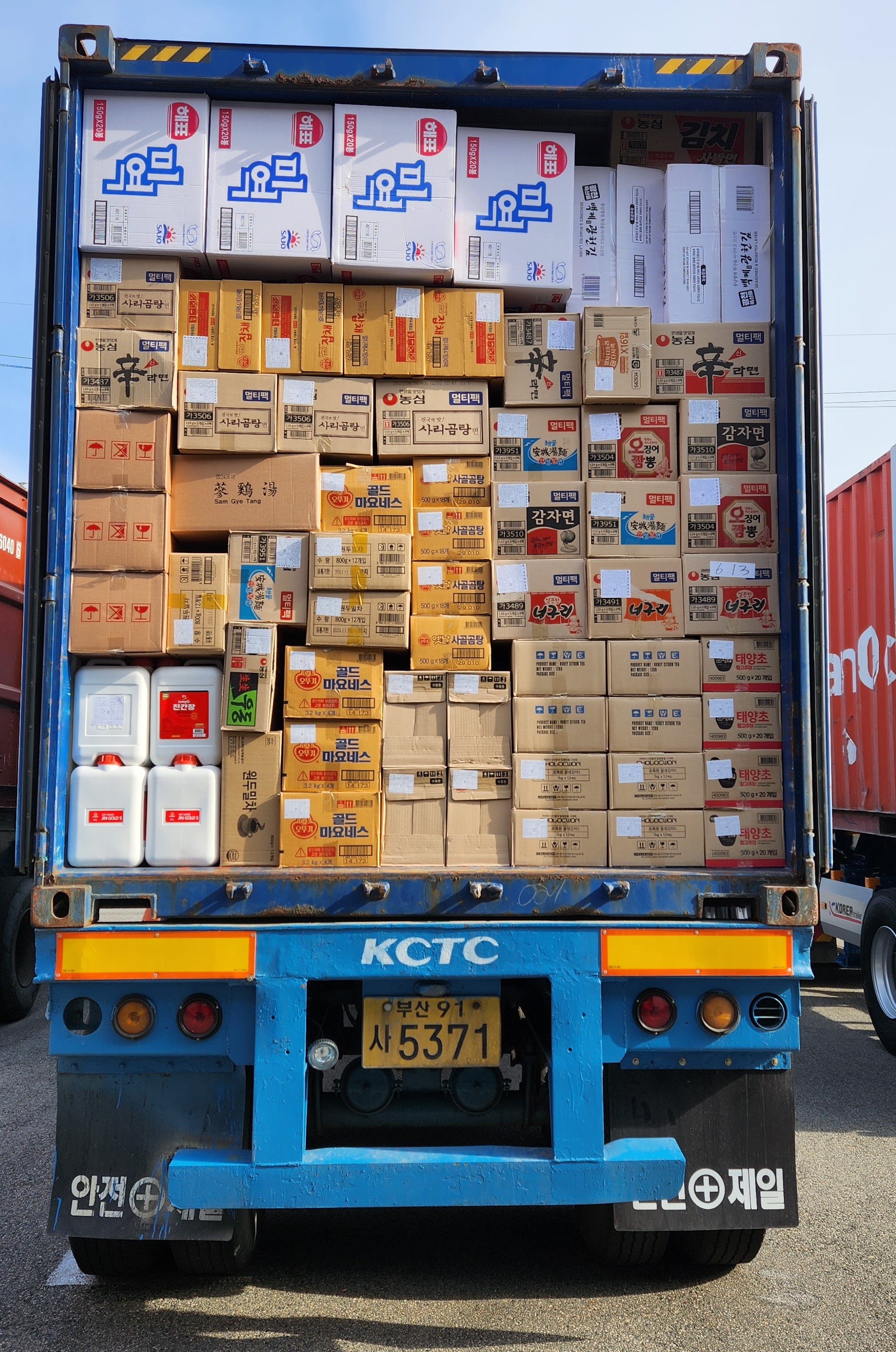 40피트 라면, 김, 미역, 간장, 유자차, 고추장, 삼계탕 선적 완료
