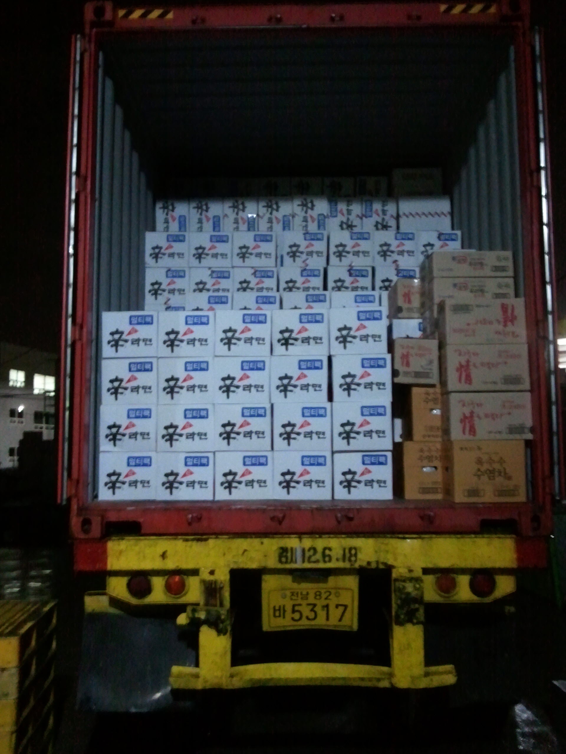 신라면을 비롯해 각종라면류와 음료,과자류,장류선적 완료
