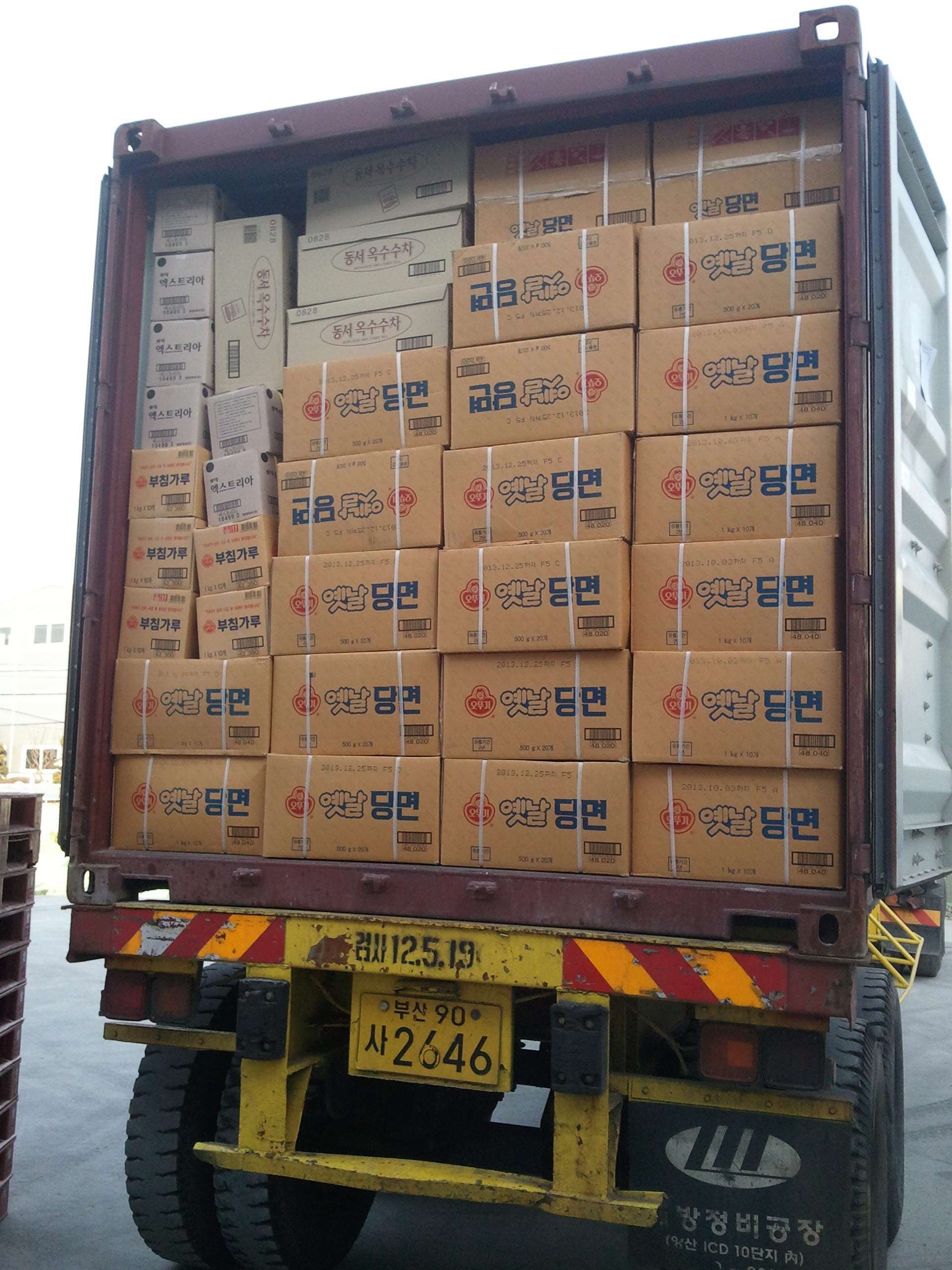 부침가루,당면,껌,옥수수차 선적완료