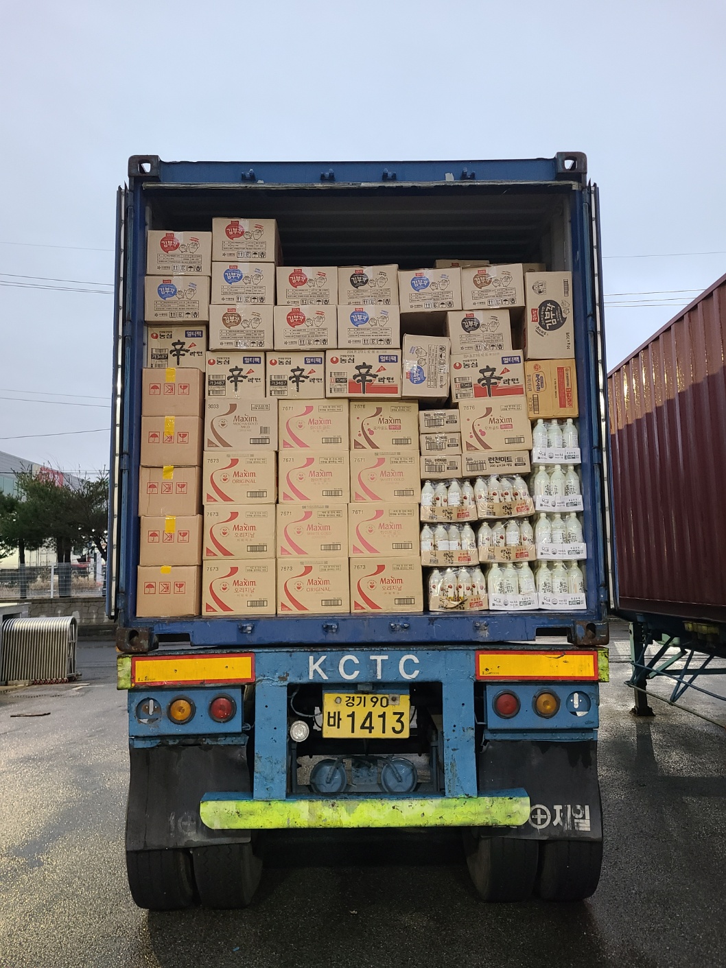 20피트 라면,삼계탕, 커피 선적완료