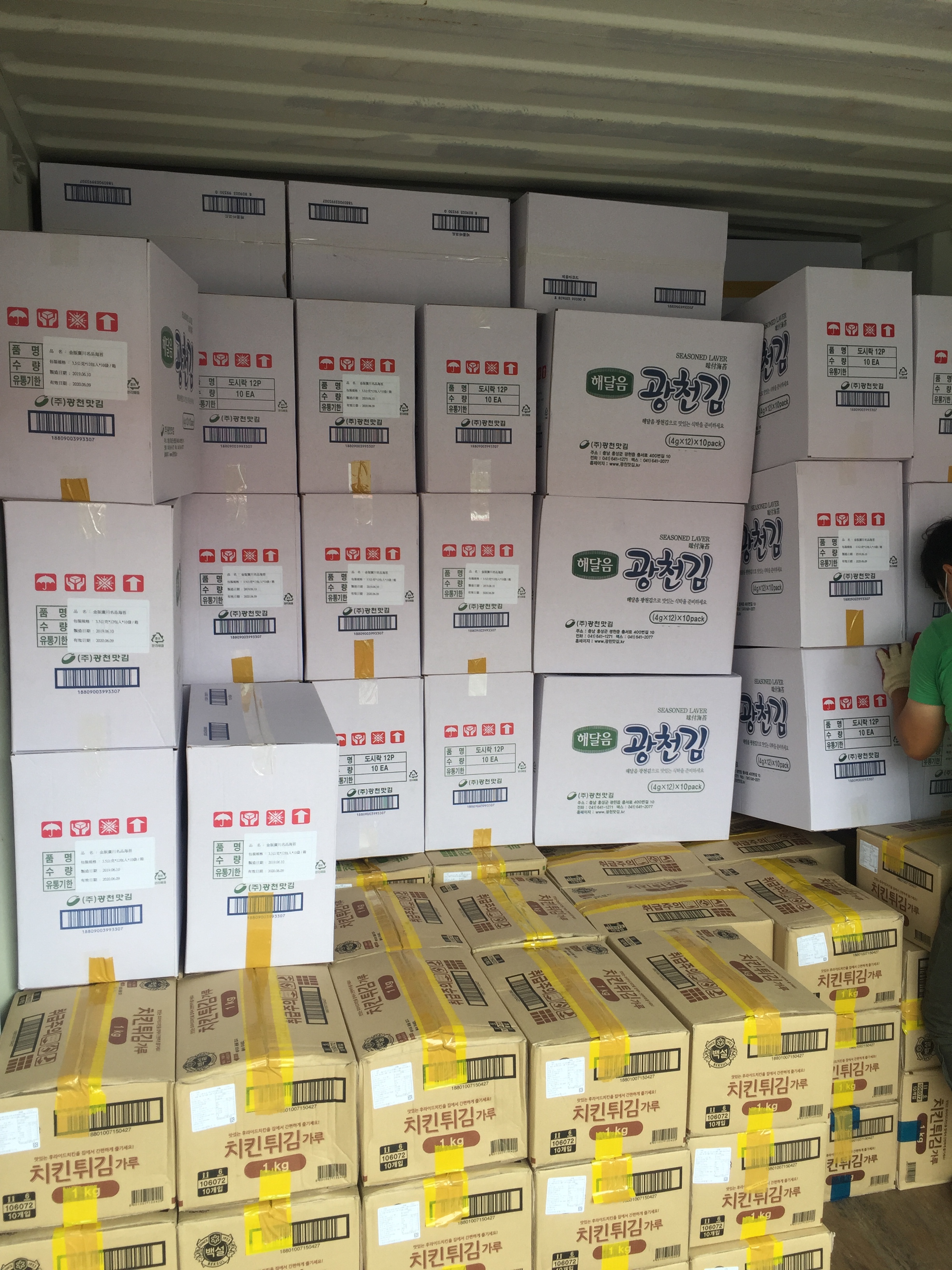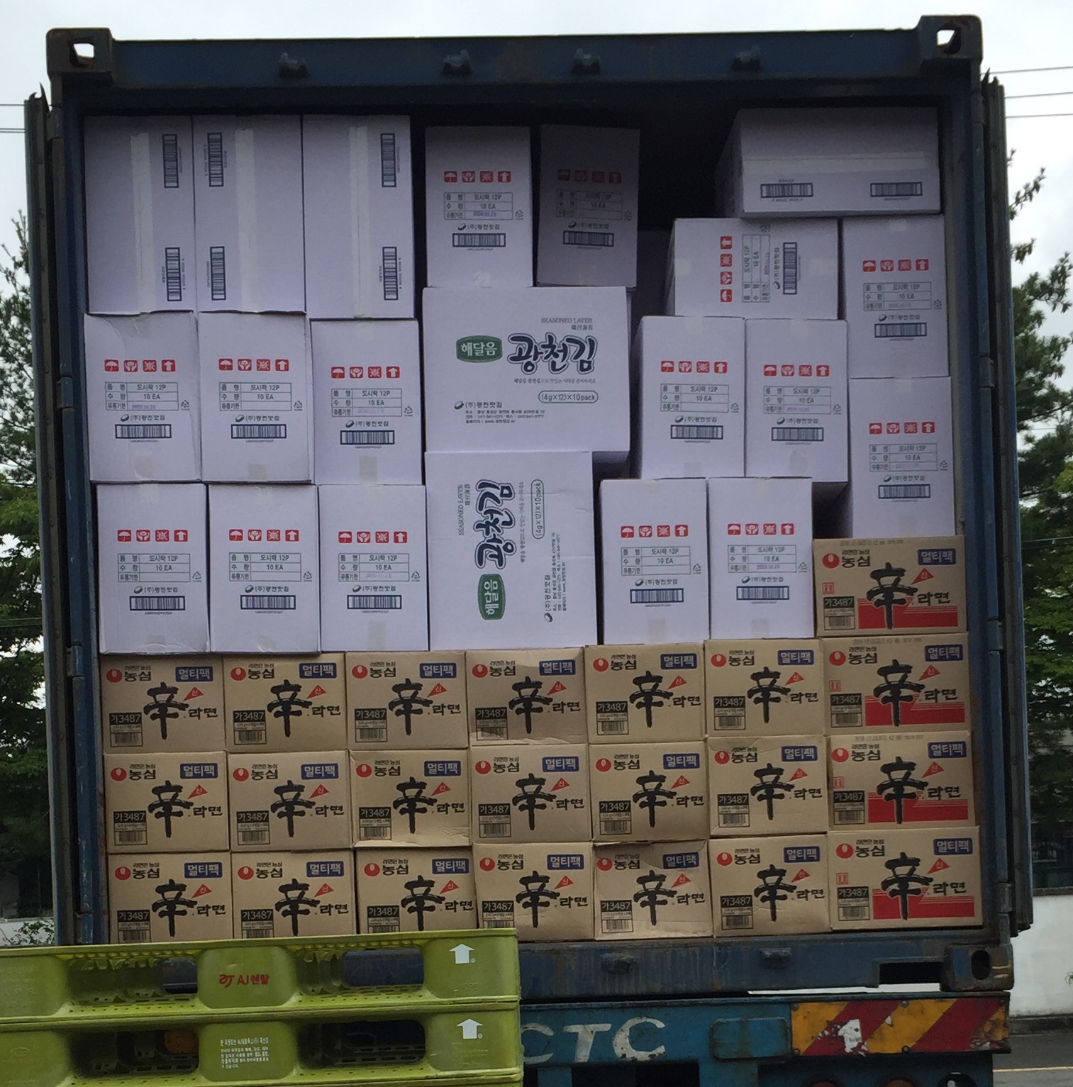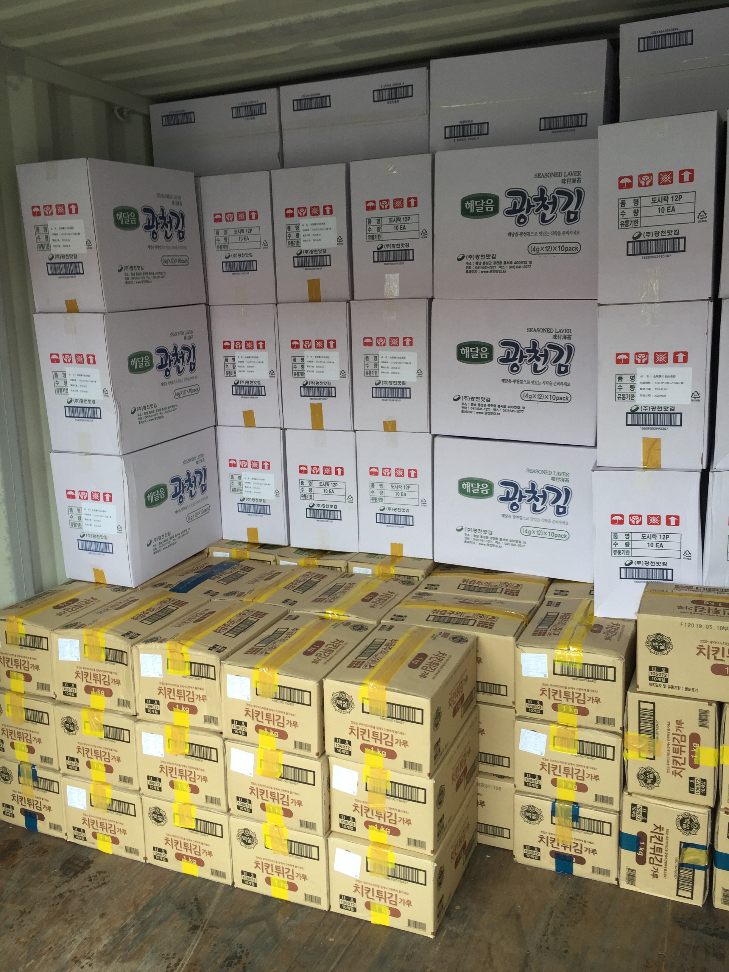20ft 치킨튀김 가루, 김, 라면 선적완료