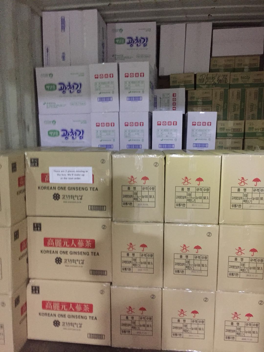 40FT 조미김 / 유자차 / 라면 / 과자 / 인삼차 선적