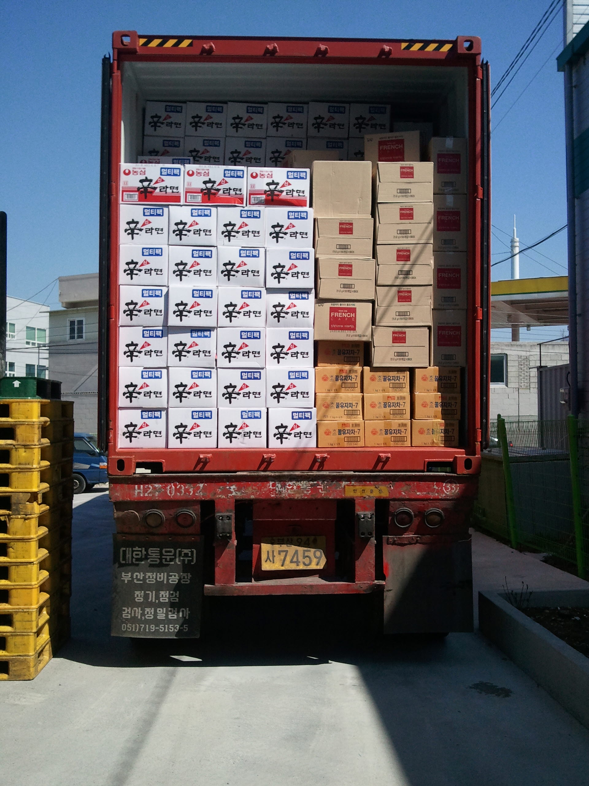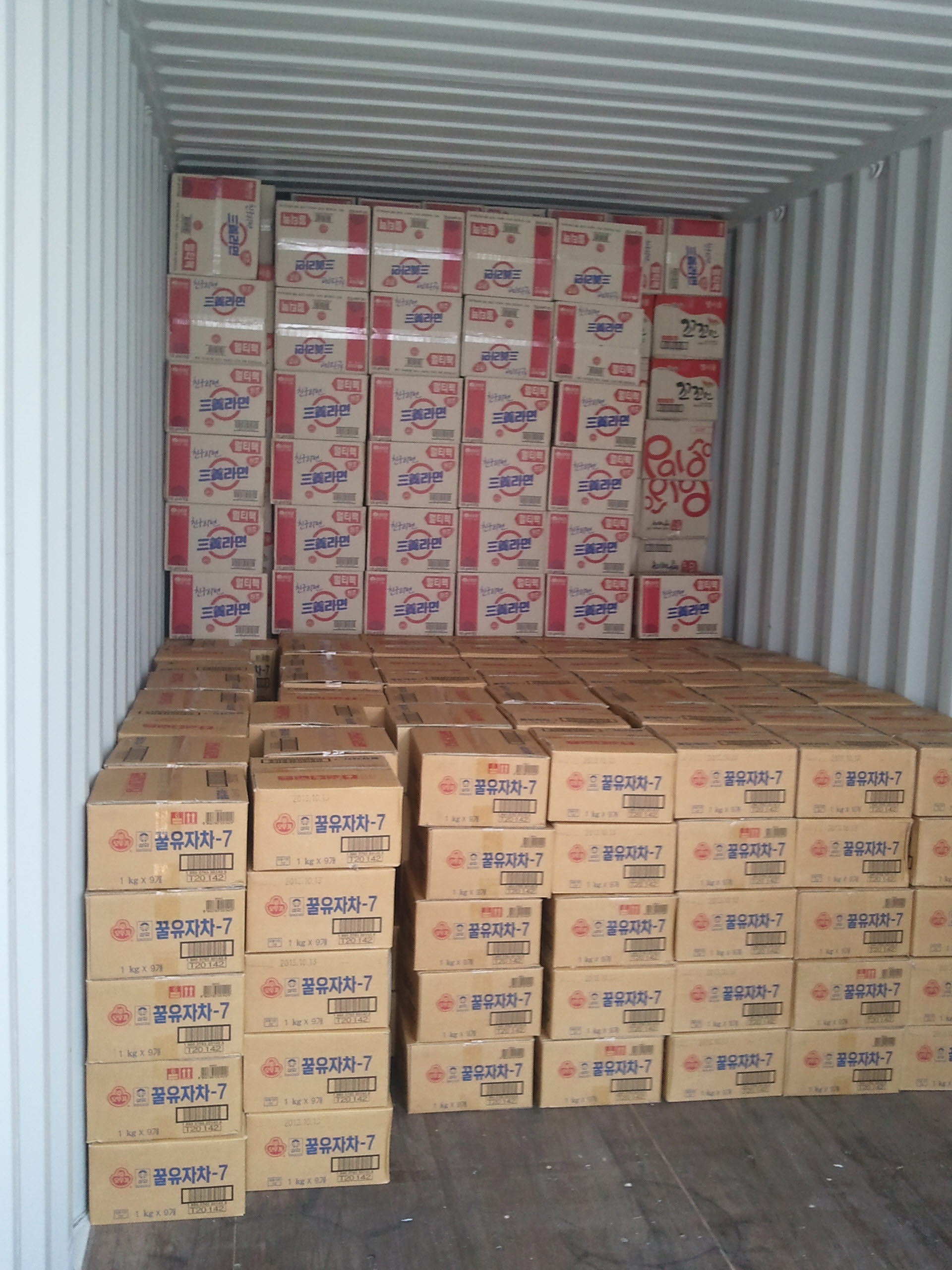 40피트로 진행된 수출품은 남양,동서 커피류와 유자차, 각종 라면류 선적완료