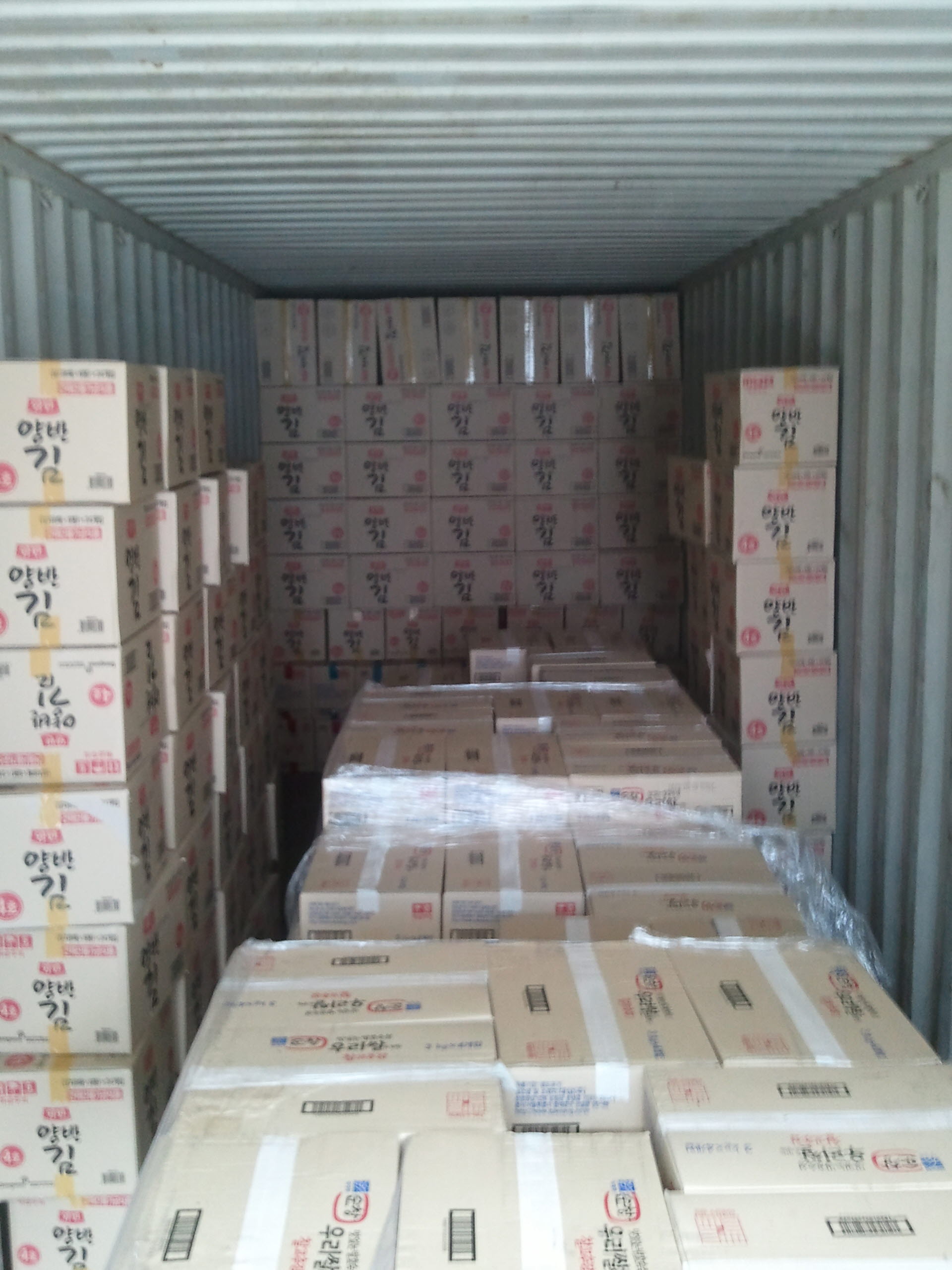 40피트로 진행된 이번 선적은, 각종 장류를 비롯해 음료,라면,김 등 10여가지 물품 선적 완료