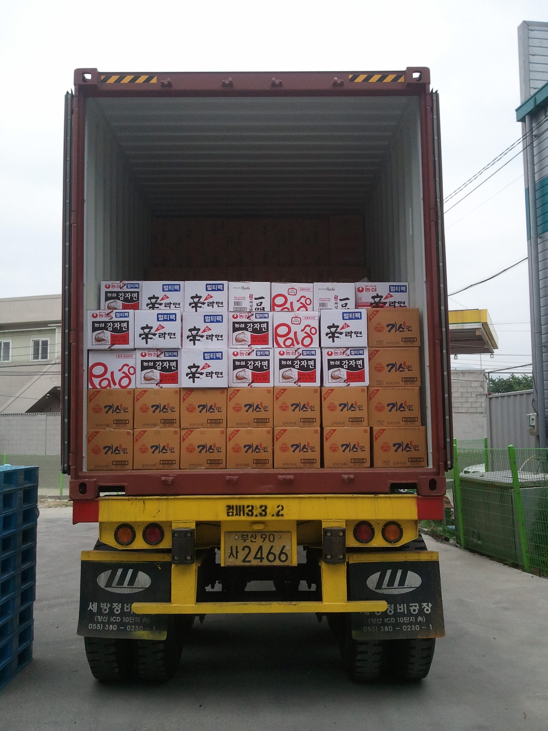 40피트로 진행된 이번 선적은 농심,삼양,팔도,오뚜기 제품의 라면류 선적완료