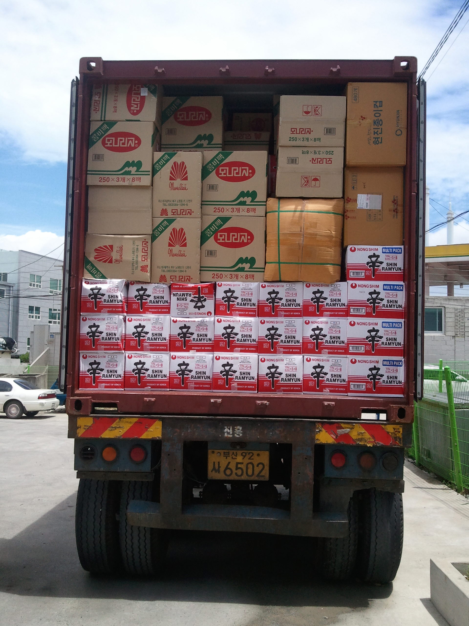라면류,음료류,스낵류,기타 잡화류 등등 150여가지 물품 선적완료.
