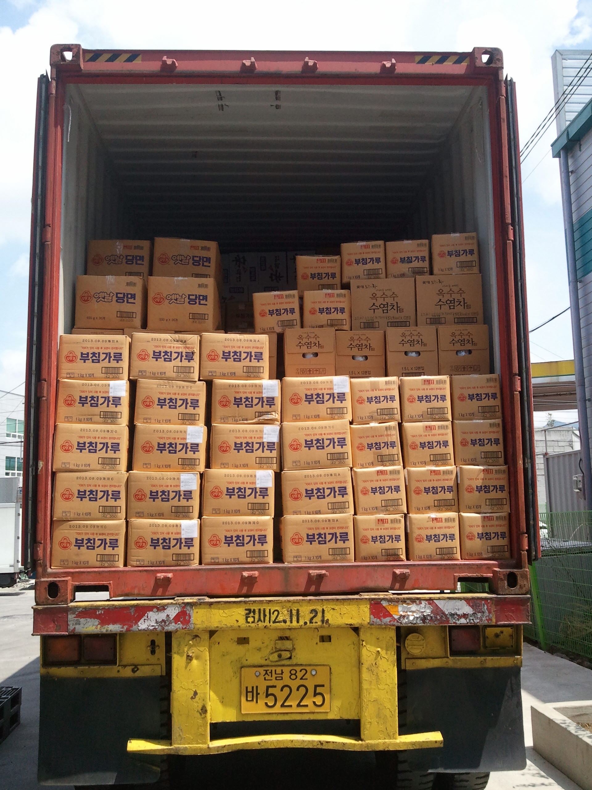 40피트로 진행된 이번 선적은 부침가루,당면,각종음료 및 라면 등