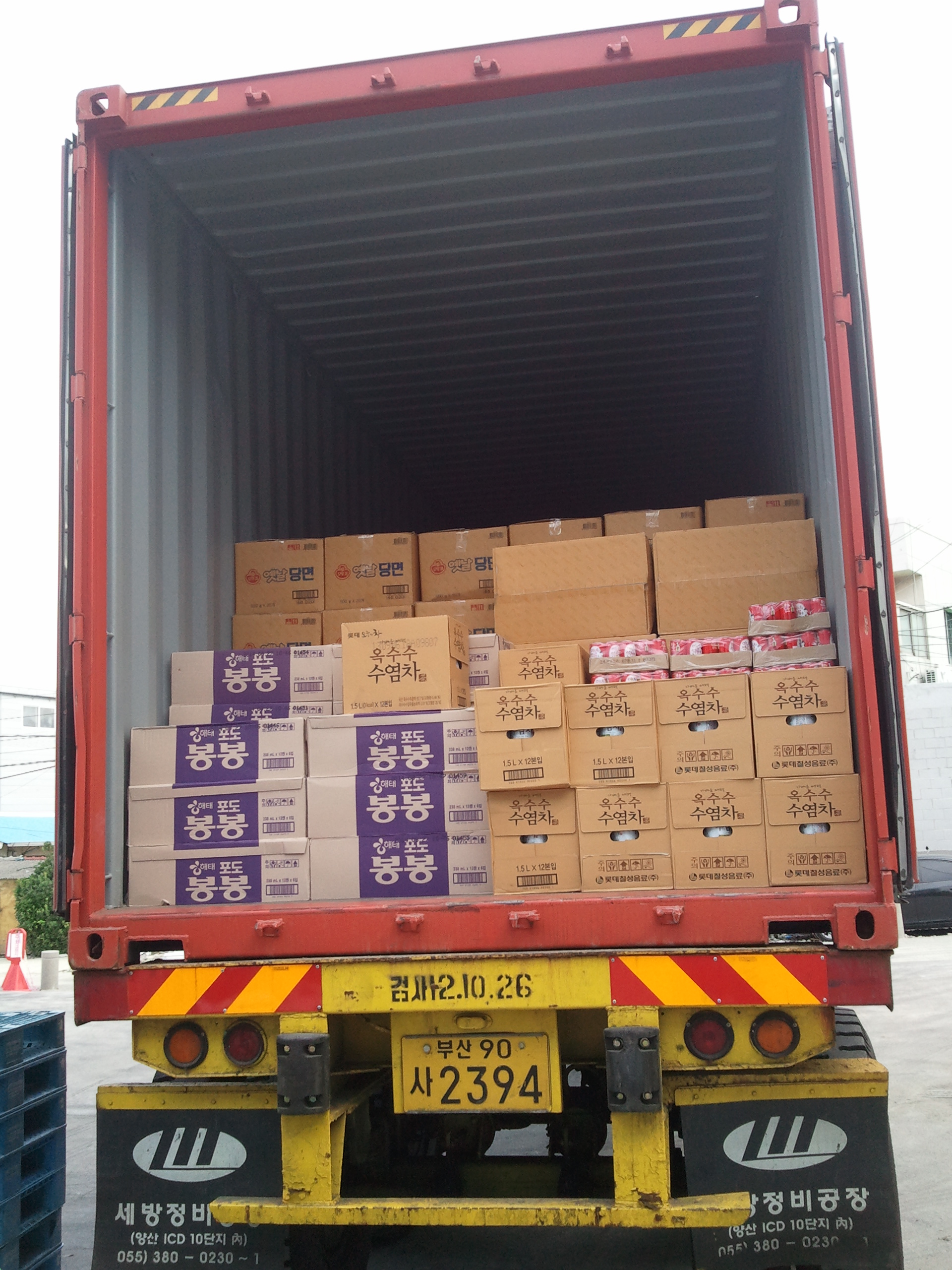 40피트로 진행된 이번 선적은 부침가루,당면 및 각종음료류 선적완료