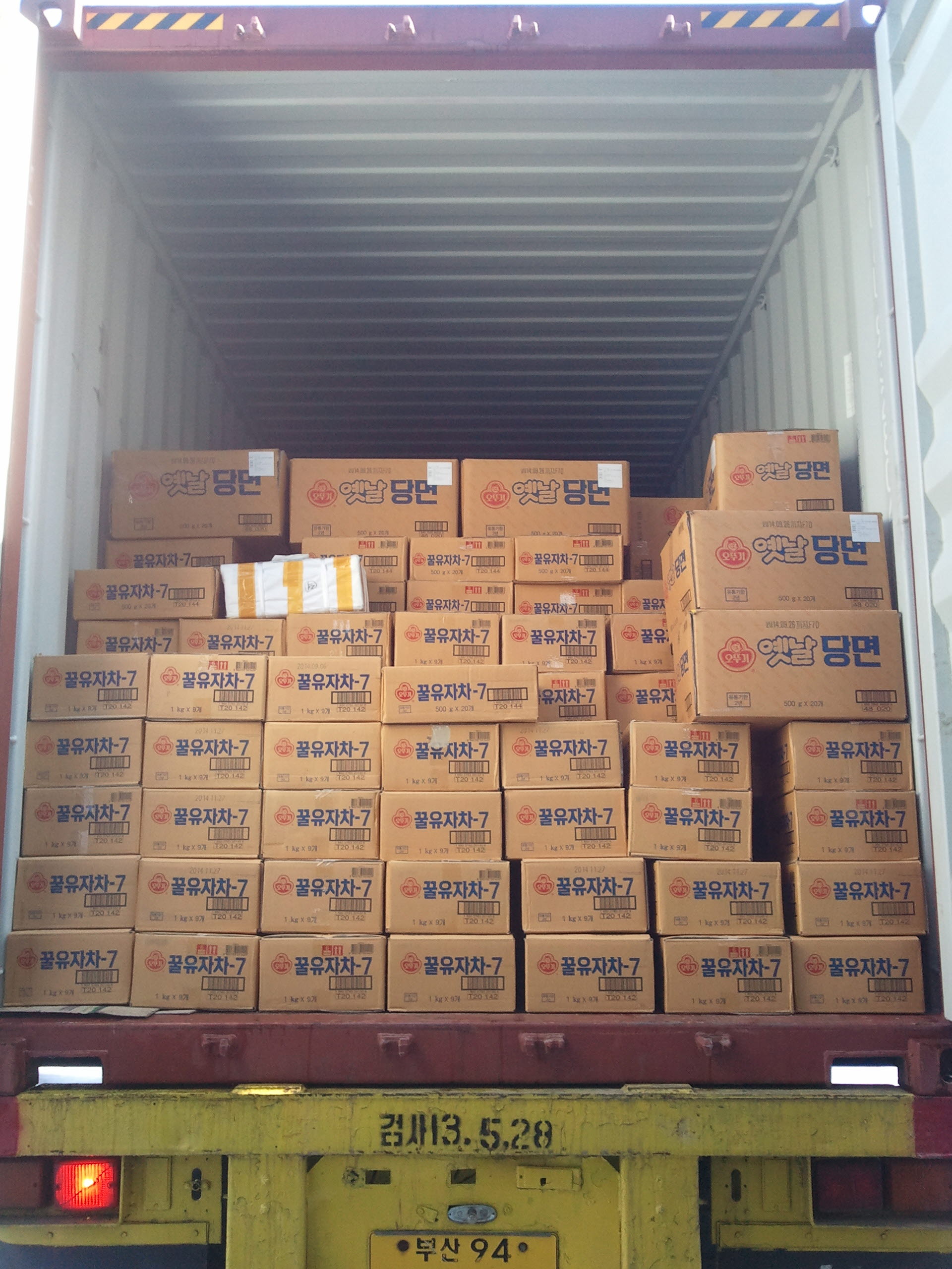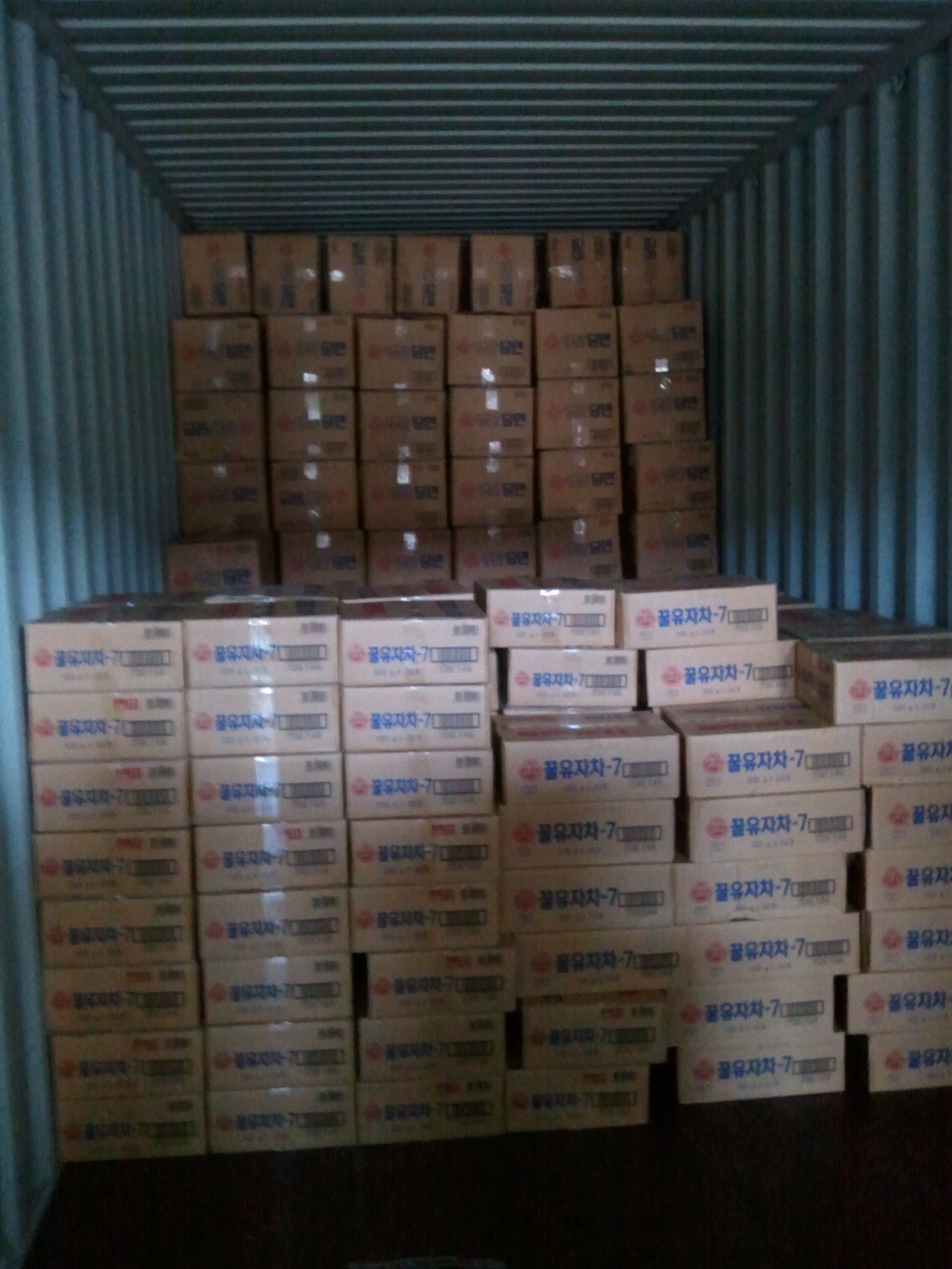 40피트로 진행된 이번 선적은 유자차를 비롯해 부침가루,당면 선적완료.