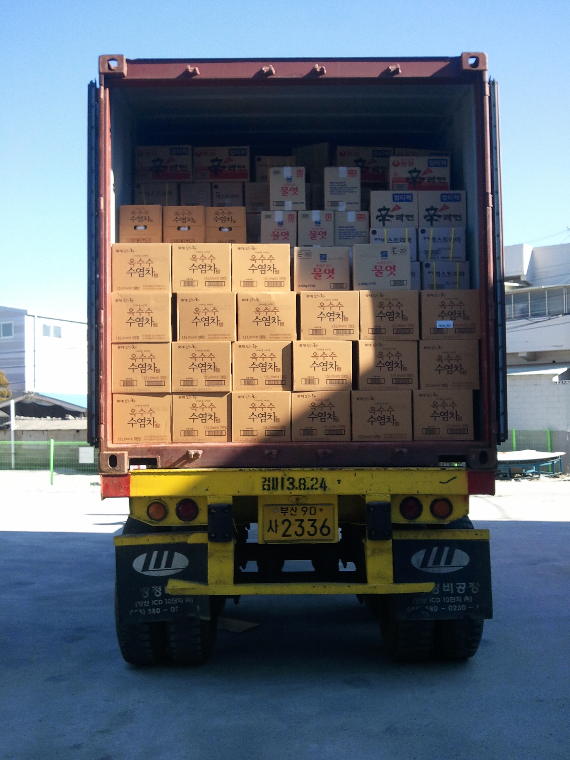 각종라면을 비롯한 음료 및 껌,물엿 선적완료