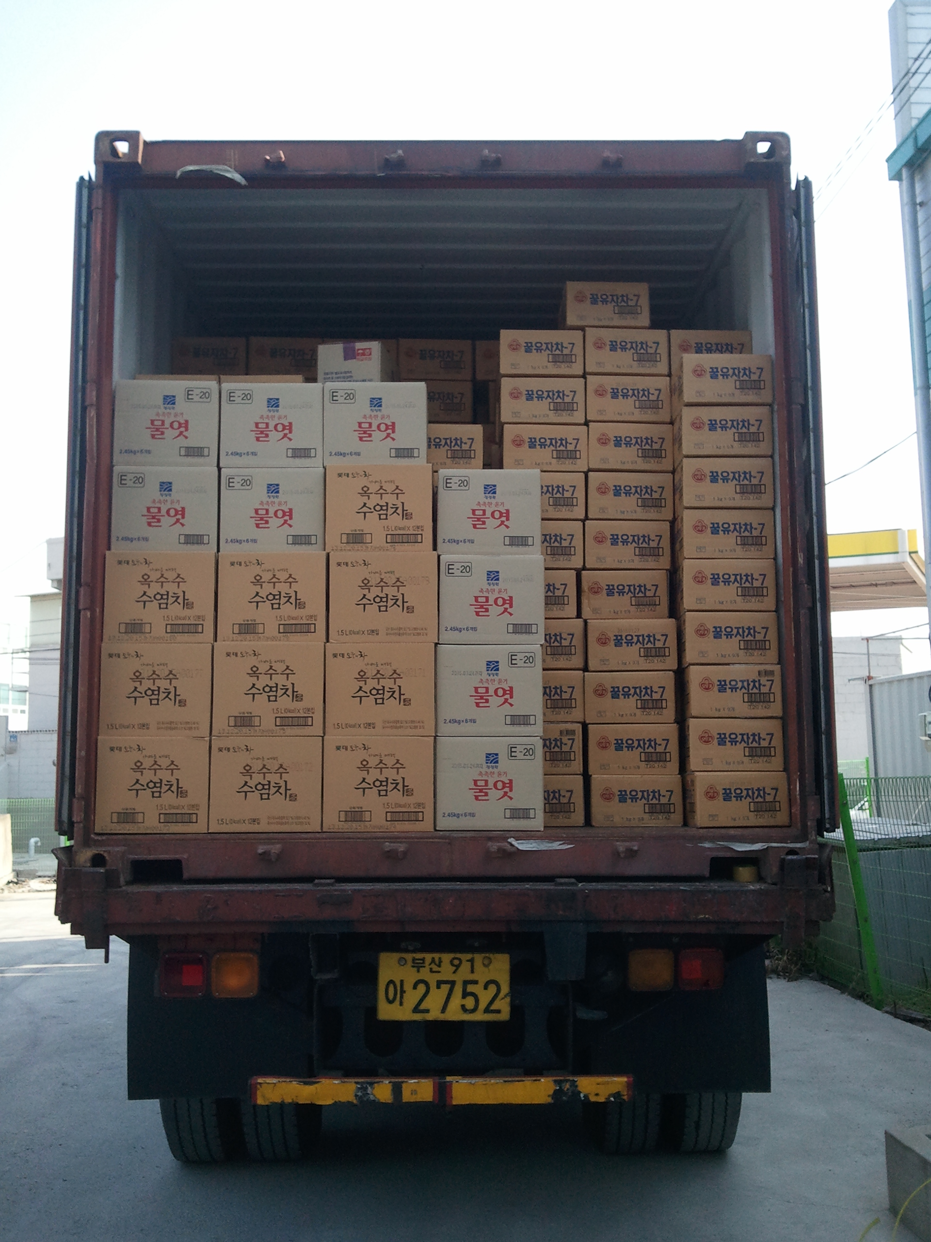 유자차,물엿,음료류 선적.