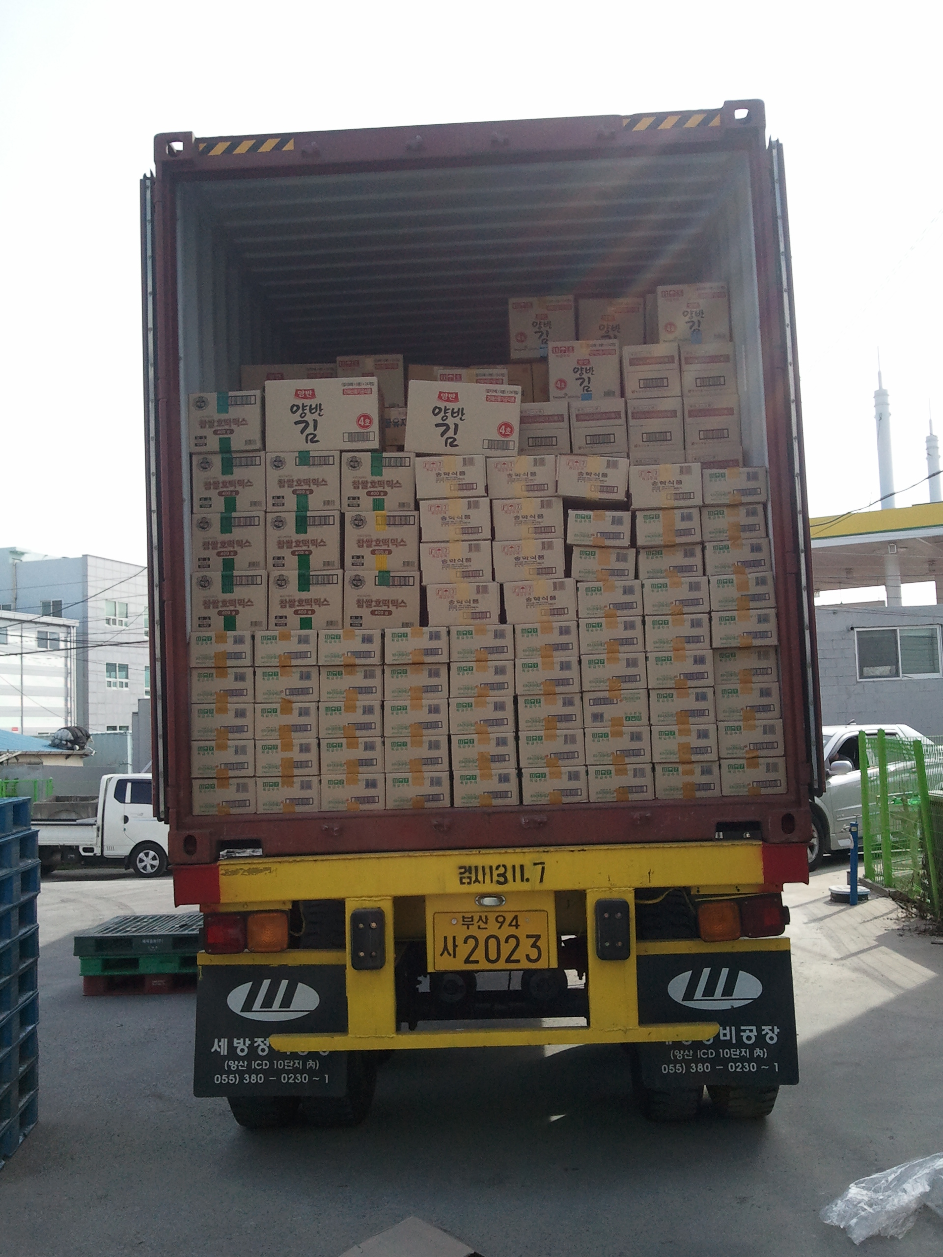떡복이떡,김,옥수수차 선적.