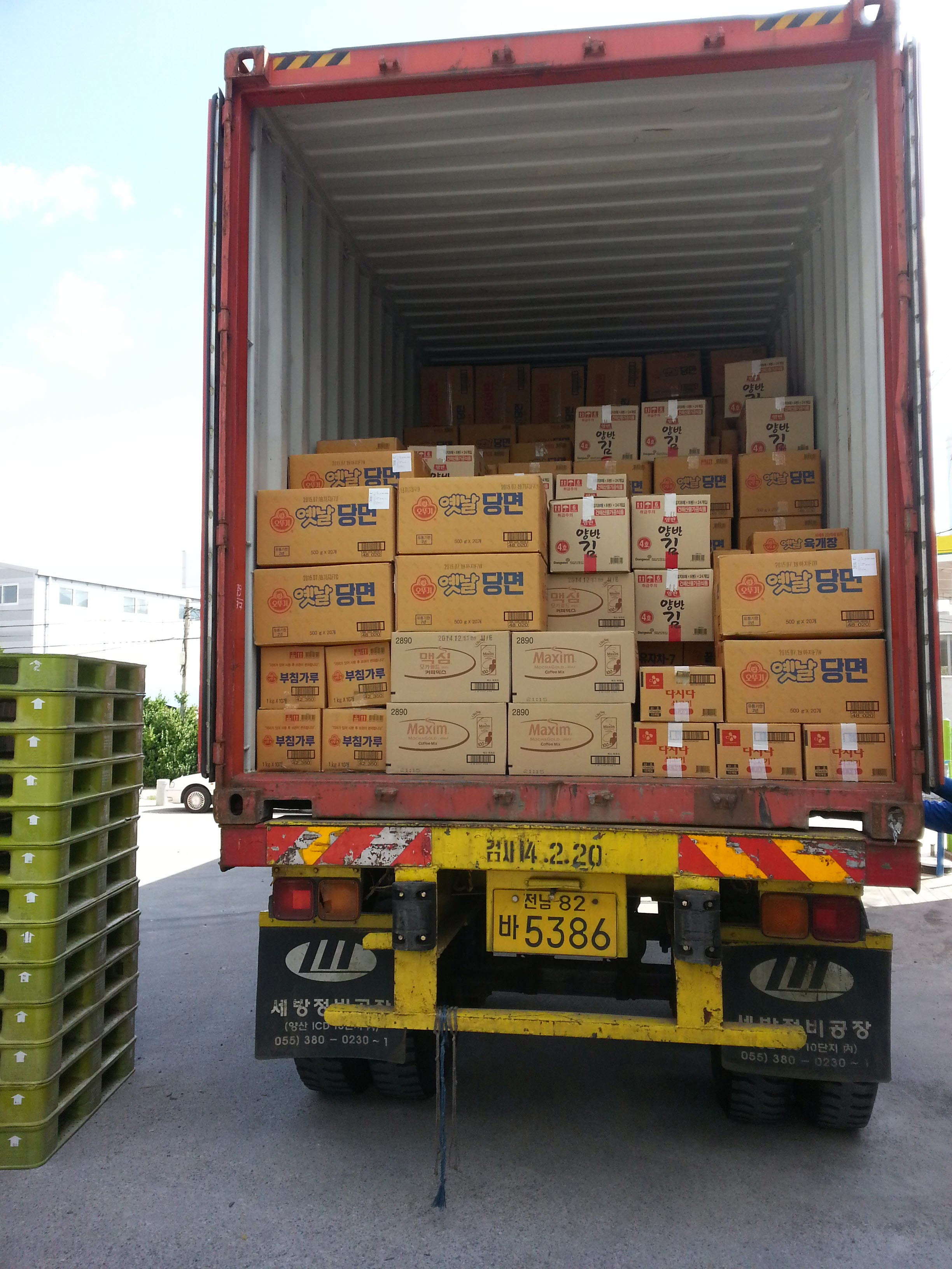 동원김,당면.부침가루.다시다.음료류 등 10여종 물품 선적완료.