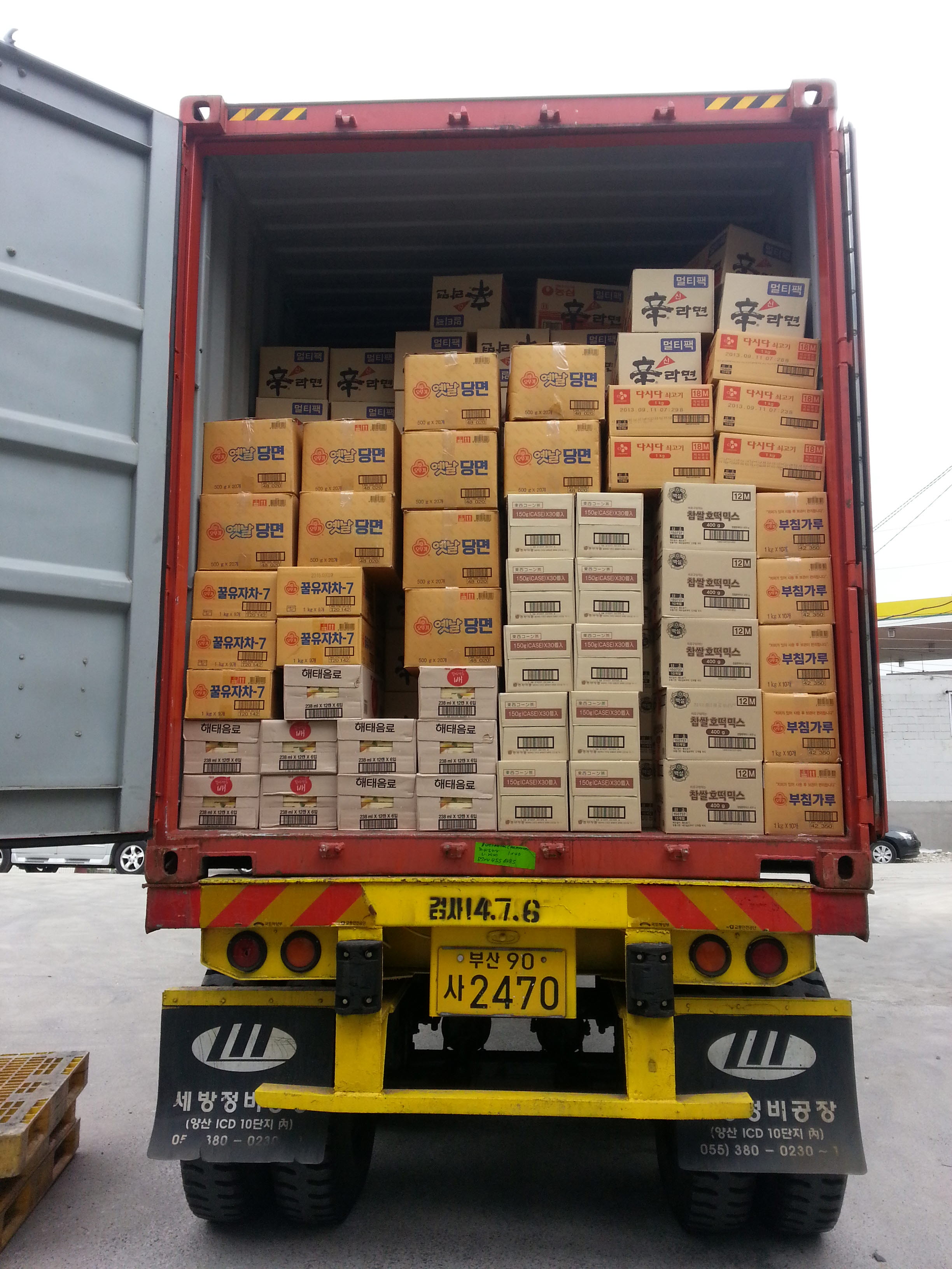 음료류,부침가루,당면, 라면류 등 선적.