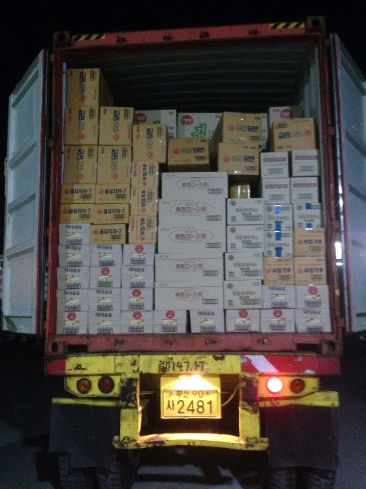 40피트로 진행된 이번 선적은 부침가루, 유자차, 당면, 음료 등 10여가지 제품 선적완료.