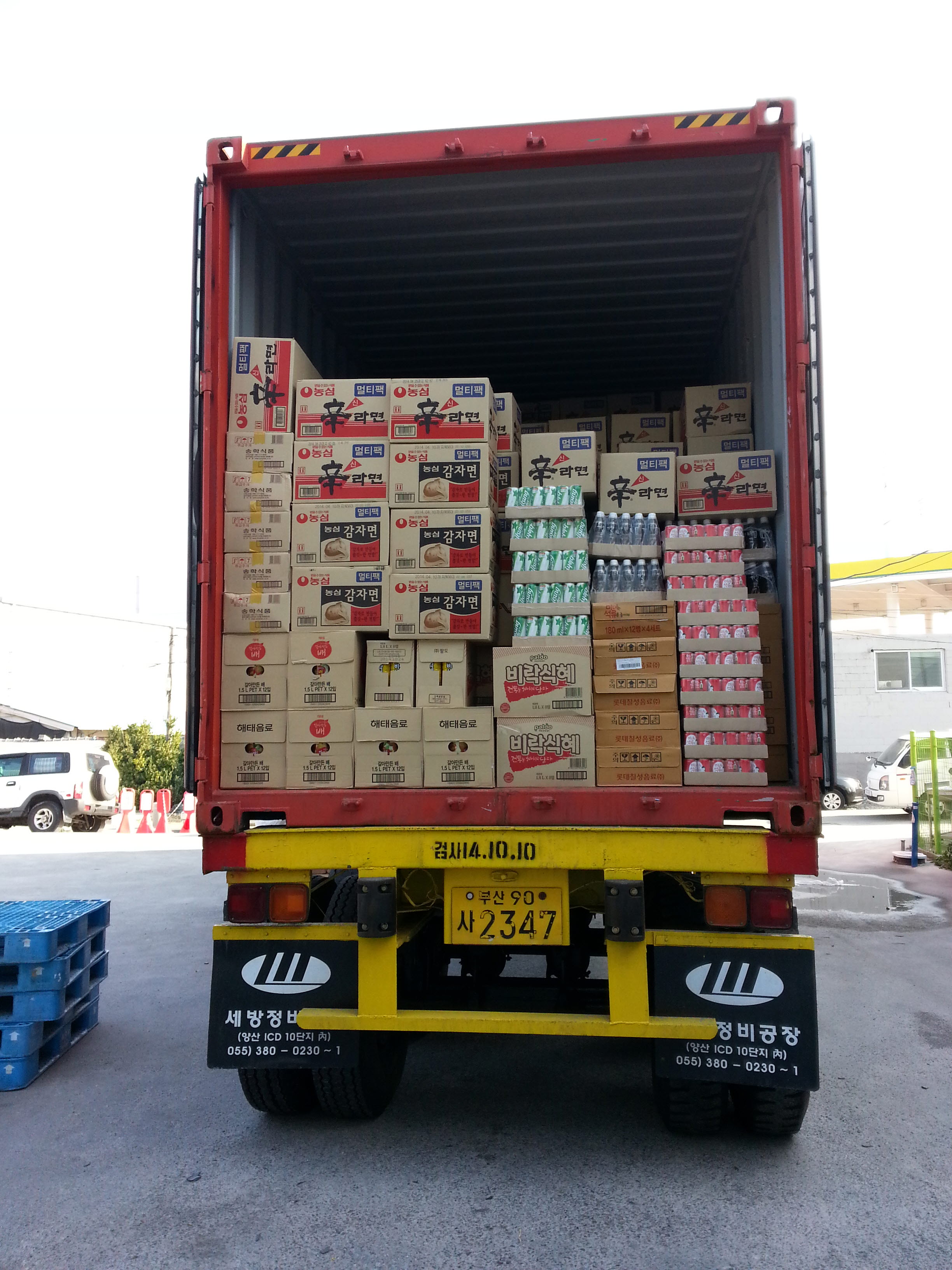 40피트로 진행된 이번선적은 떡복이떡, 라면류 및 음료류 등 선적완료.