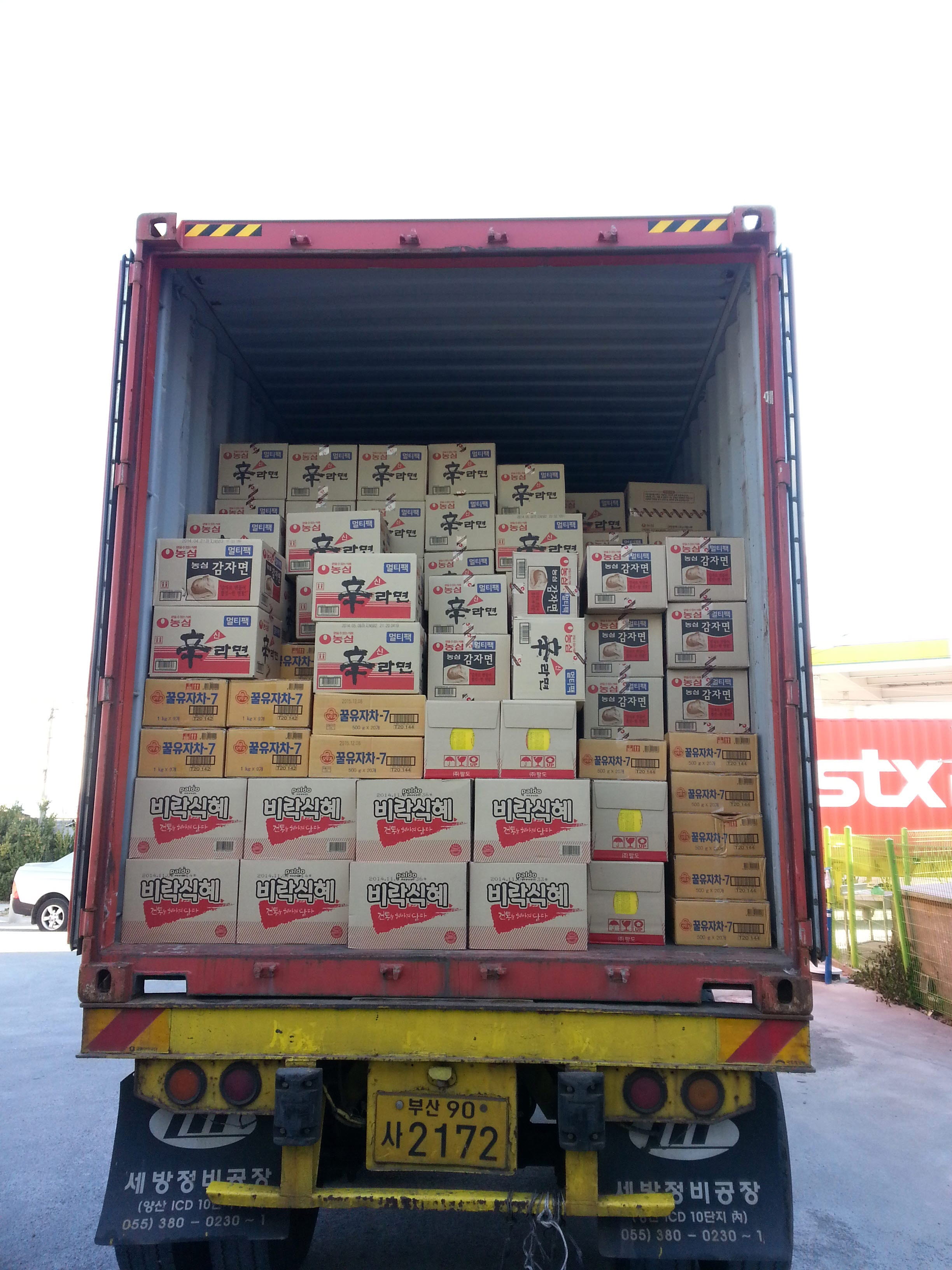 40피트로 진행된 이번 선적은 유자차 및 음료류,라면류 선적완료.