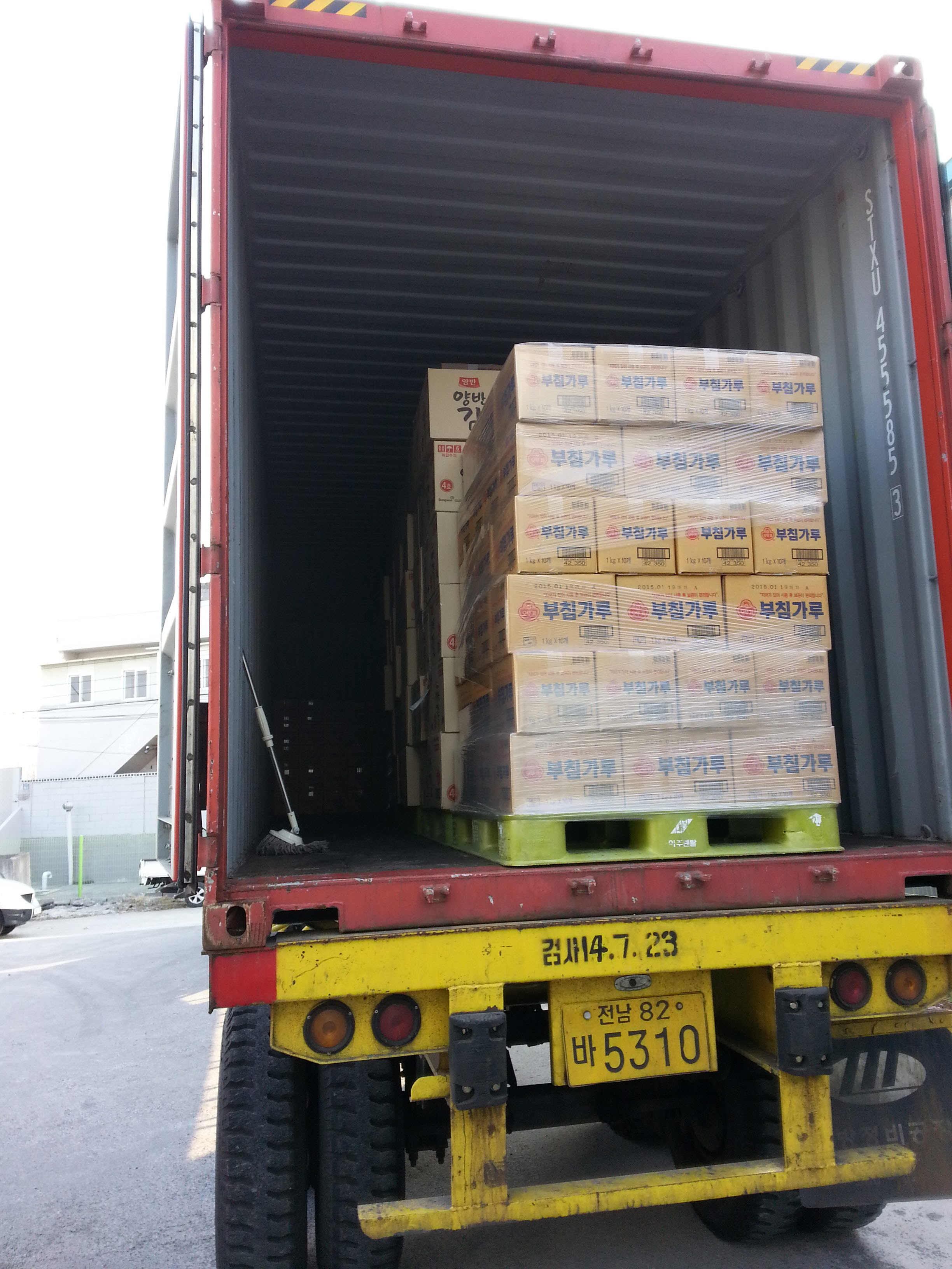40피트로 진행된 이번선적은 각종 김류,부침가루,당면등 10여가지 물품 선적완료.