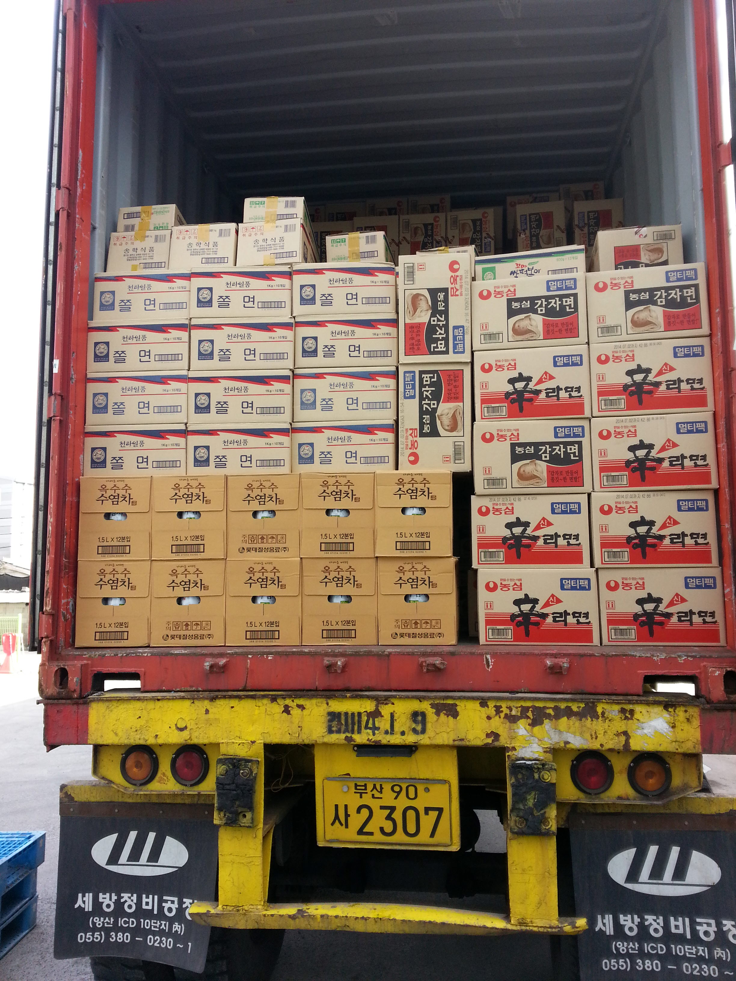 떡복이 떡 및 면류,라면류,음료류 선적완료.