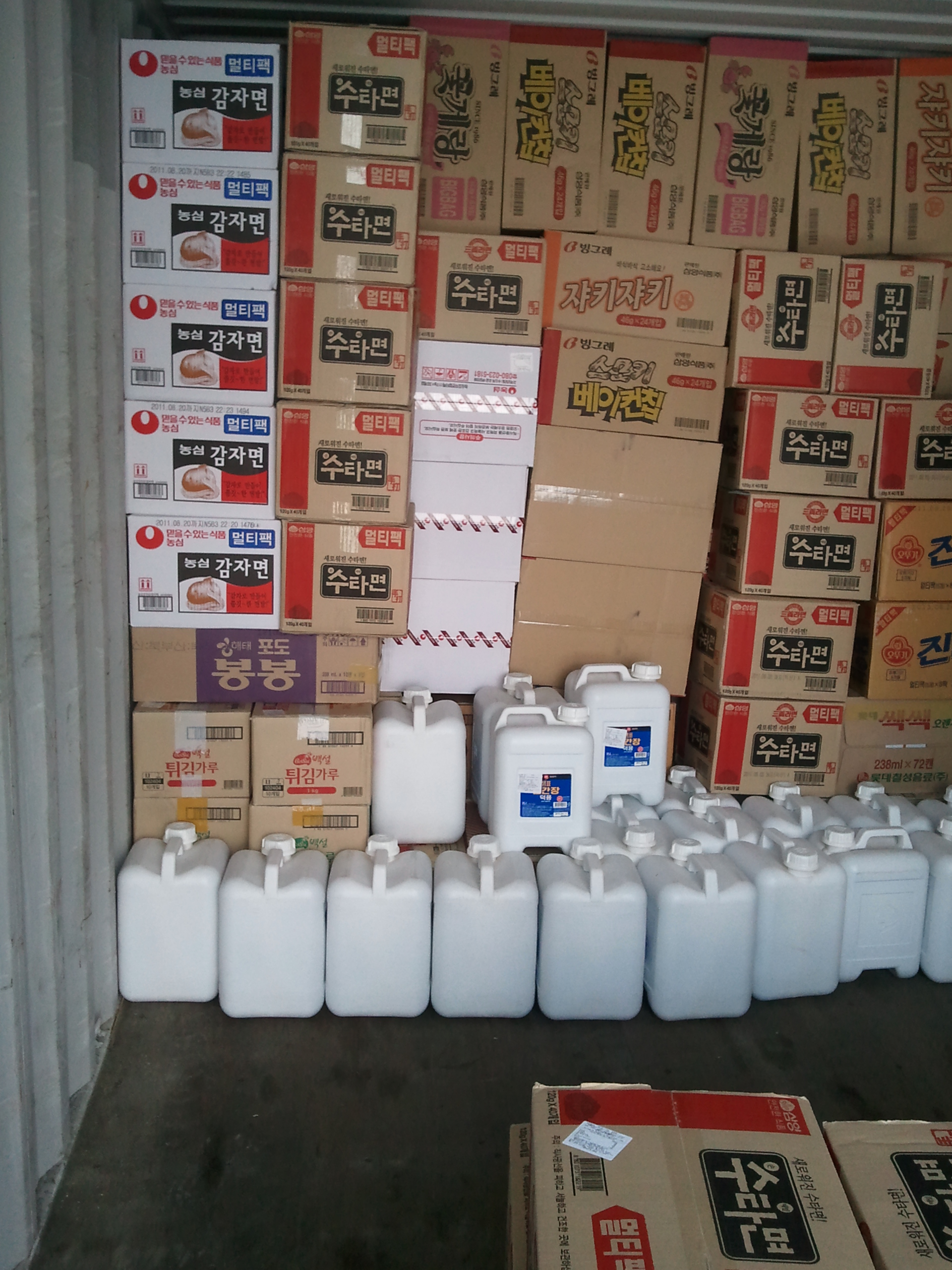 라면을 비롯해 과자류 및 각종 식품류등 150여가지의 물품 선적.