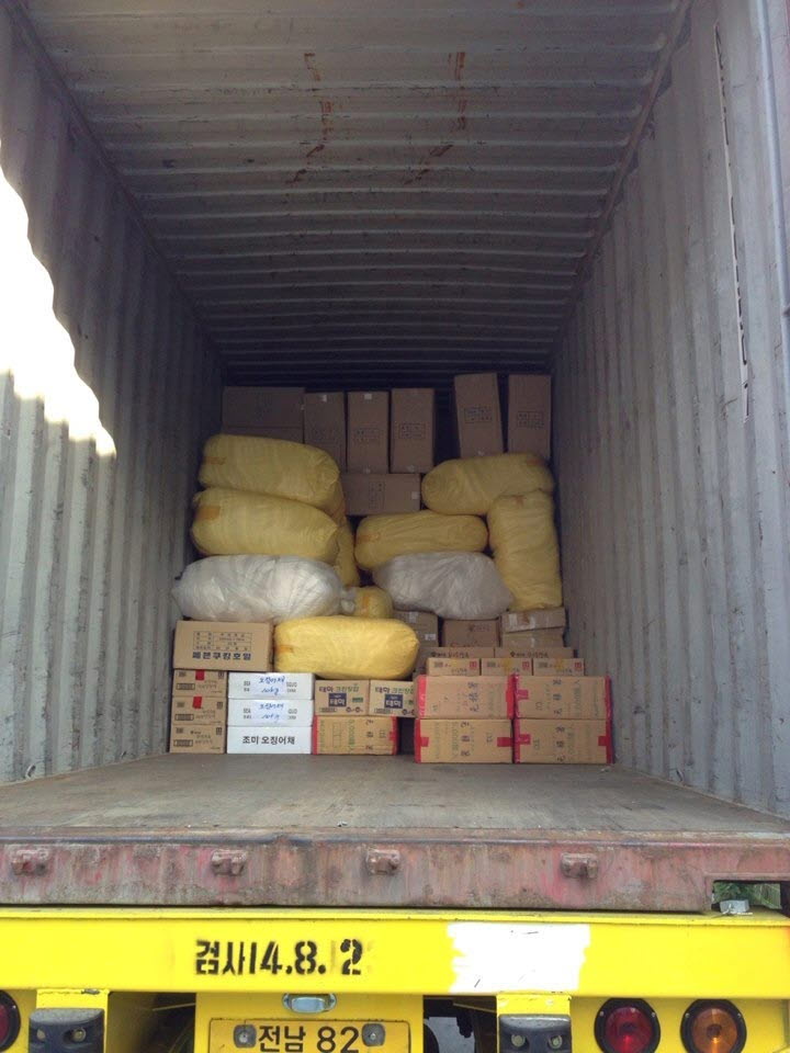 40피트로 진행된 이번 선적은 라면을 비롯해 300여종의 한국식품, 잡화 등 선적완료.